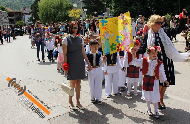 Весело костимирани дјечаци и дјевојчице прошли су, у пратњи својих васпитача, од објекта Брегови, главним улицама и преко градских мостова, до Трга слободе, гдје су пјесмом и игром одушевили присутне родитеље, али и бројне грађане Требиња.