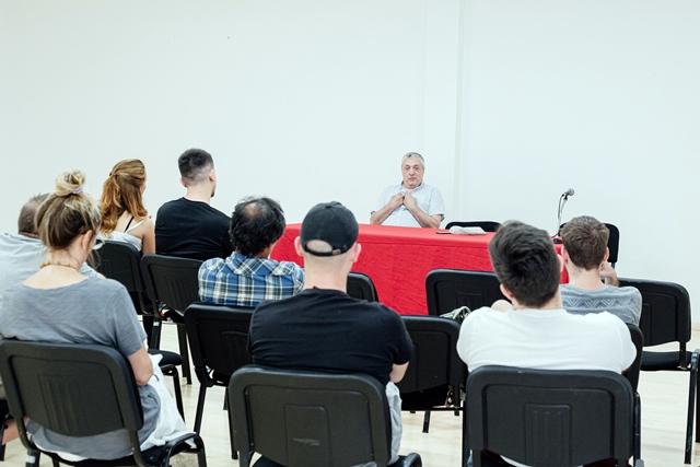 „Нажалост, ове године је нешто мање младих људи и нешто мање је њих из Требиња, већ је више гостију, људи са Фестивала који желе сазнати нешто више о различитим темама и садржајима из области позоришта, тако да и ја прилагођавам и теме и садржаје о којим говорим. Према томе, ово није радионица, јер би радионица подразумевала и неки практичан рад, који смо имали у некаквој почетној идеји, али, с обзиром на то да су се окупили разнородни учесници, од младих људи који се тек занимају за ову уметност до већ формираних глумаца и већ формираних редитеља – ми онда томе прилагођавамо и разгворе, бавећи се више, на нивоу неког мастера, питањима и проблемима наше културе и нашег позоришта, него што се бавимо првобитном замисли да се ради са искључиво младим људима“, каже професор Савин.