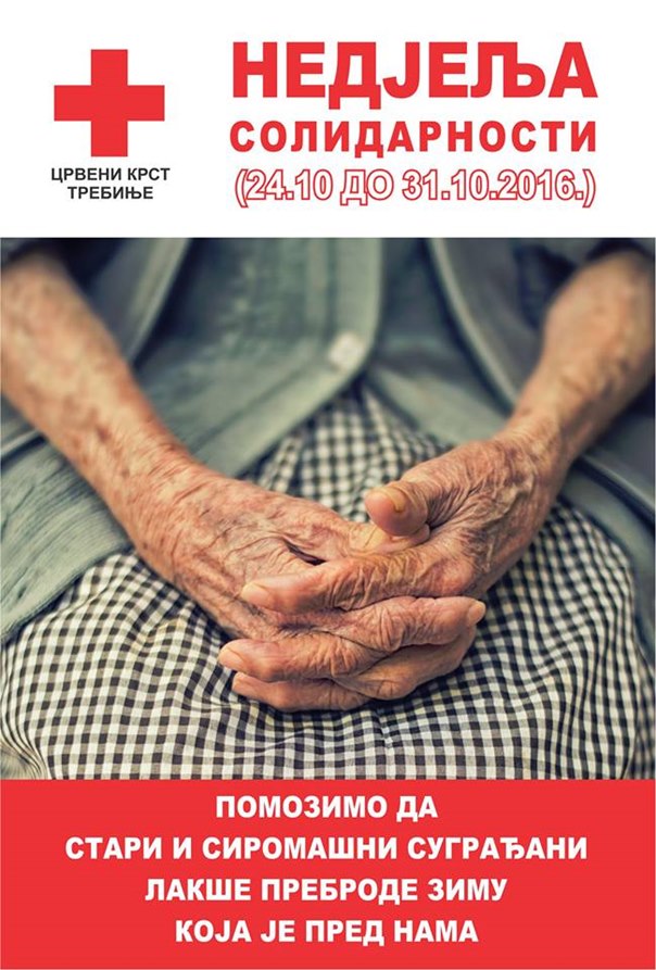 „У свим већим трговачким центрима у граду постављене су кутије са знаком Црвеног крста, у које наши грађани могу да оставе помоћ за наугроженије – првенствено храну и хигијенска средства, а одјећа и обућа су мање потребни. Такође, донације прихватамо и у просторијама Градске организације Црвеног крста, свакодневно у времену од 8 до 14 часова“, појашњавају из Градске организације Црвеног крста Требиње и позивају све суграђане да буду хумани у Недјељи солидарности.
