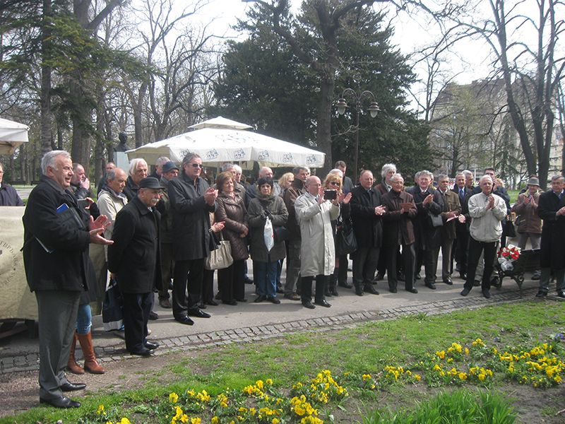 07 Ispred Dučićeve biste: Neđo Maksimović, Mirjana Stepanović, Rade Petrović i Božidar M. Glogovac