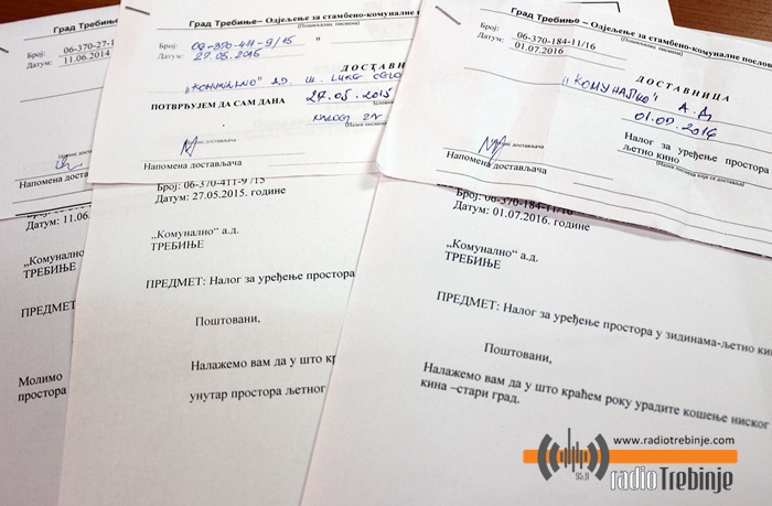 Он је напоменуо да се по налогу овог одјељења простор Љетног кина редовно коси и чисти од отпада и по два пута годишње, те приложио радне налоге упућене АД „Комуналном“, као доказ тих тврдњи.