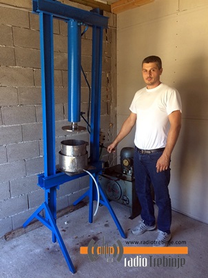 „Хидрауличну пресу конструисао сам прије пет година. Већину посла сам ја одрадио, а помогли су ми и мајстори стручни у хидраулици. За неке дијелове ангажовали су се у Индустрији алата Требиње, јер се само тамо могу урадити. Одушевила ме њихова срдачност и спремност да помогну. Морао сам поједине елементе, попут хидрауличног клипа да купим, па кад је све било готово, уклопим гдје треба. Одлучио сам се да пресу направим сам, јер је нова прилично скупа, а била ми је неопходна да бих процес око прављења сока убрзао и осавременио. Прије сам имао старе, ручне пресе, у које стаје један по један шипак. Некада сам три тоне шипка циједио двадесет, а сад ми је за исту количину довољан један дан“, каже Милош.