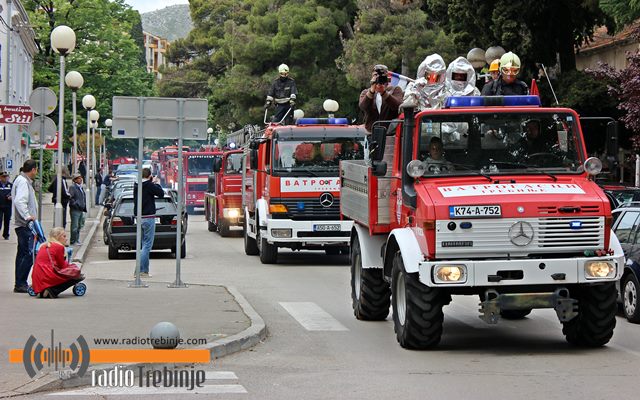 U defileu trebinjskih vatrogasaca, koji je priređen prvi put nakon 25 godina, učestvovali su i prijateljska vatrogasna društva iz Lastve, Bileće, Herceg Novog, Konavala, vatrogasna vozila Centra za gazdovanje kršom, kao i improvizovana vozila koja Eparhija ZHiP koristi za gašenje požara.