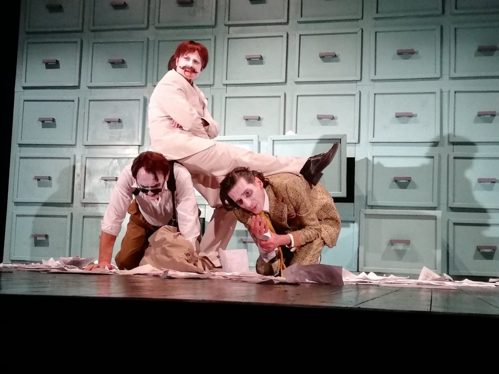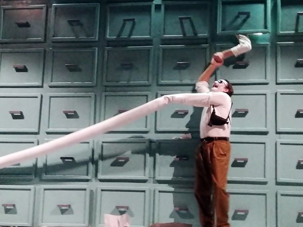 Редитељ Игор Павловић, уз избор костима, музике и дизајна светла истовремено је и аутор и посве оригиналне сценорафије која је таква да током целе представе има „улогу“ сценског реквизита. Креација која садржи мноштво цитата (из немог филма, највише), лепе, у погледу ликовности, сценске призоре, садржају/игри примерену кореографију, маске, костим... Речју, по свему необична, изванредна представа, али ваљало би поразмислити о могућности ефектнијег скраћивања, односно избегавања слика већ виђених током представе.