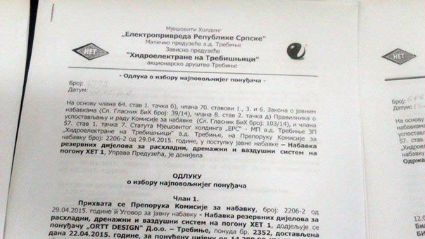 Представљајући на данашњој прес конференцији оригинале уговора које су Хидроелектране на Требишњици склопиле у посљедња два мјесеца, Вукановић је прецизирао да је са фирмом „Алфа сикјурити“ ХЕТ уговорио посао одржавања обале потока Вријеке у Берковићима вриједан 17.832 КМ без ПДВ, те мјерних мјеста на обали ријеке Заломке 47.945 без ПДВ, запитавши се на основу чега се „фирми која се бави физичким и техничким обезбјеђењем особа и имовине даје посао одржавања обала потока и ријека у Херцеговини“.